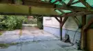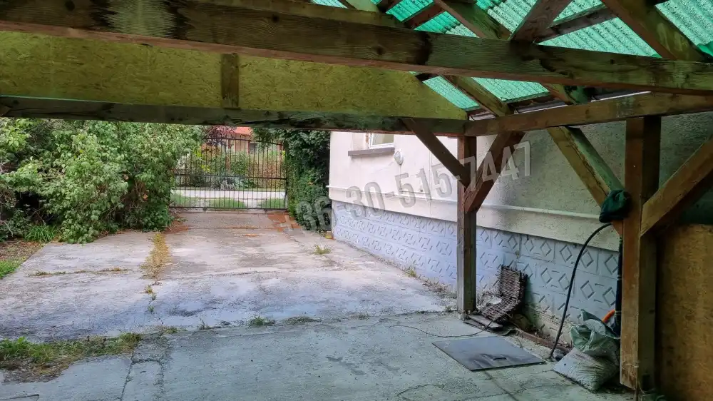A kertben található egy fedett gépkocsi tároló, két autó számára.