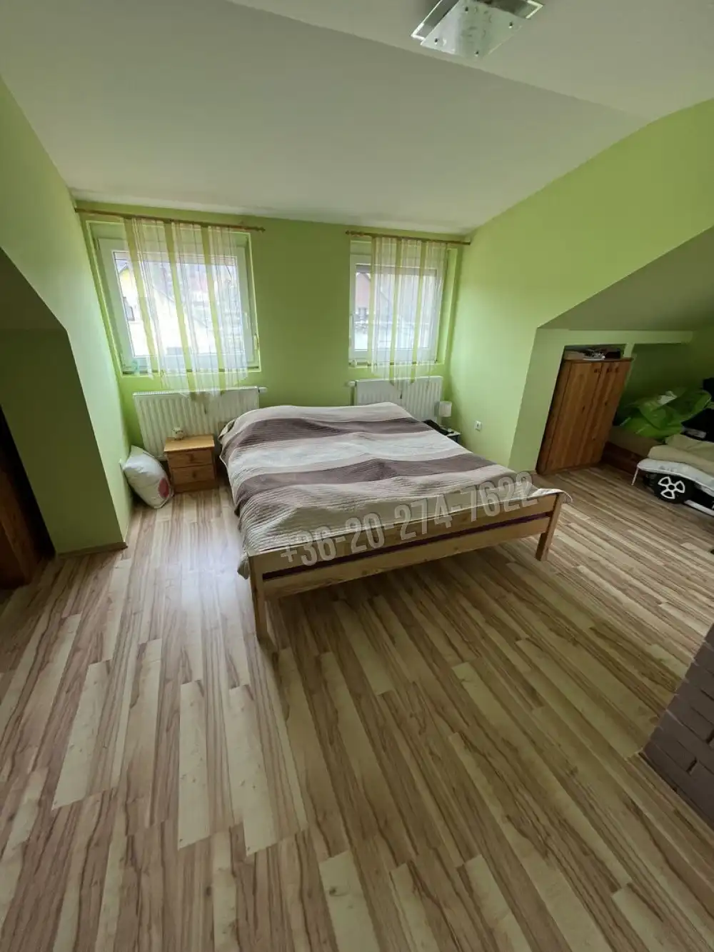 - **Tetőtér:** tágas szoba + galéria, fürdőszoba (tusoló) + toalett
