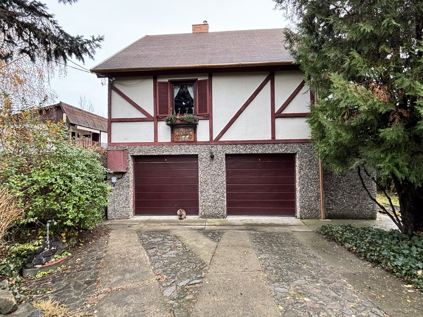 Az alsó szinten egy masszív, 50 m²-es vasbeton szerkezetű dupla garázs, valamint két külön bejáratú tároló található – ideális kerékpárok, szerszámok vagy szezonális felszerelések számára.