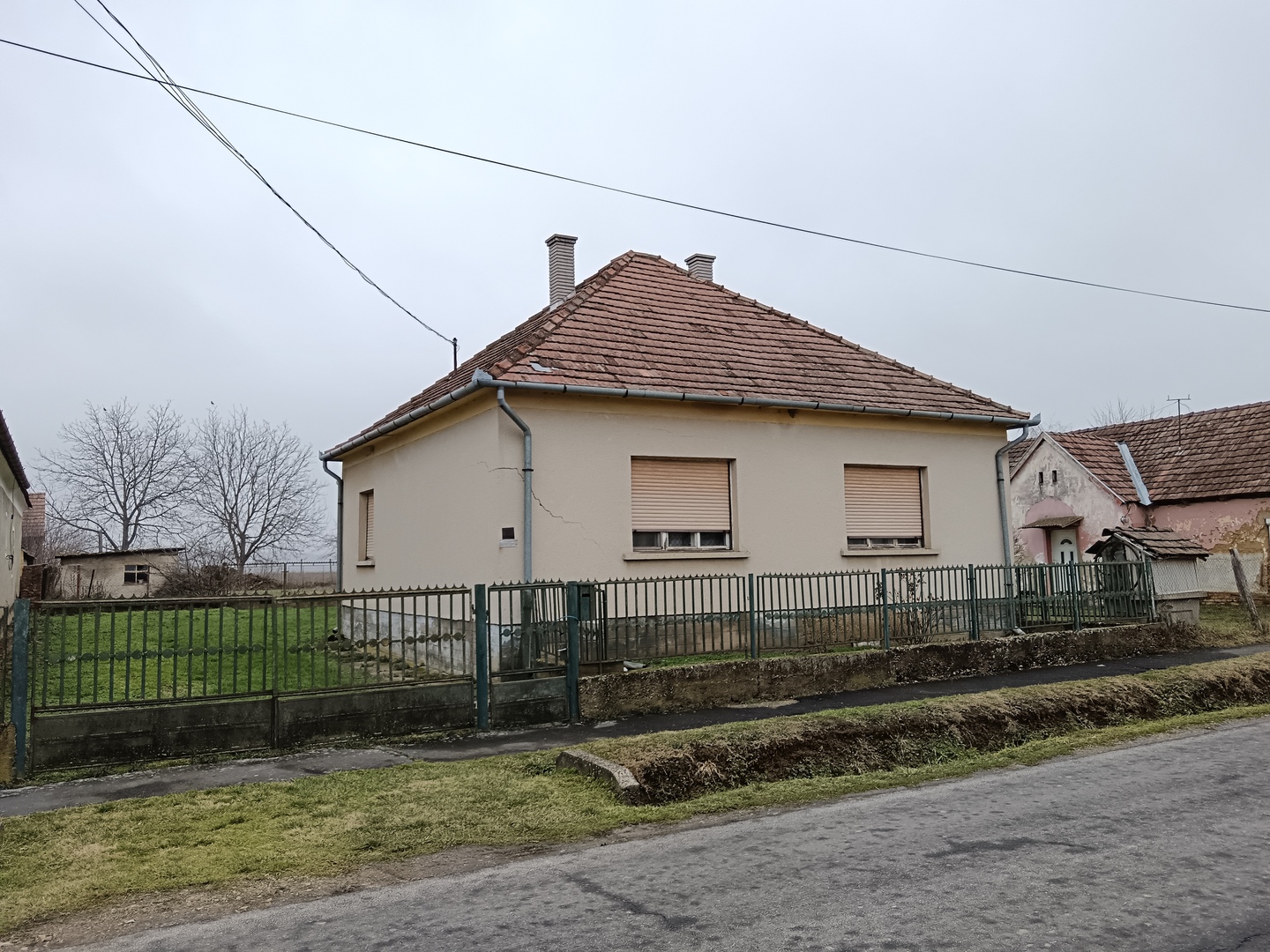 A 3482 m2-es hatalmas, sík telken elhelyezkedő épület 1980 körül épült, beton alapra, téglából, tetejét cserép fedi. A több mint 100 m2-es épületben előszobát, étkezőt, konyhát, fürdőszobát, kamrát, valamint három szobát találunk. A közművek közül a víz, villany és csatorna került bevezetésre, de a gáz is beköthető. A kályhával történő fűtést három kémény teszi lehetővé, a melegvízről villanybojler gondoskodik.