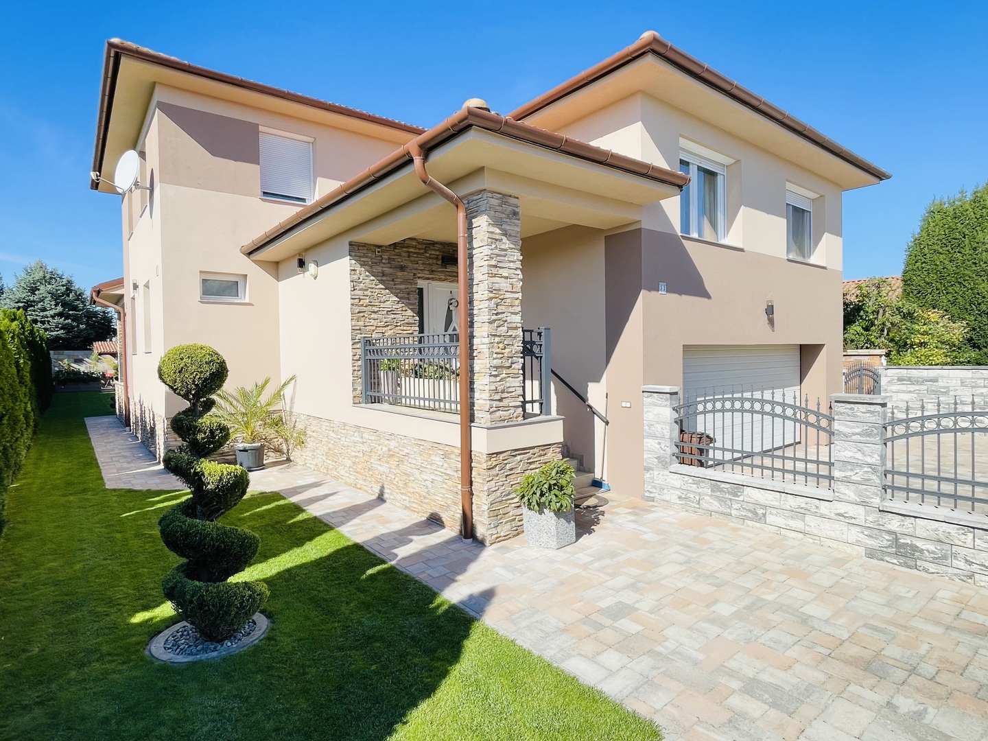 A belvároshoz közeli, csendes lakóparkban található 3 szintes, 293 m²-es családi ház, 794 m²-es parkosított telken.
