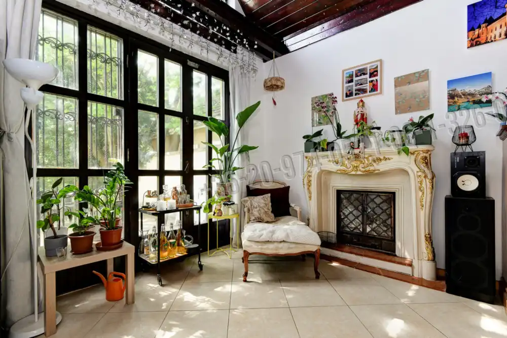 Hangulatos nappali eredeti, stílusos cserépkályhával és kandallóval.