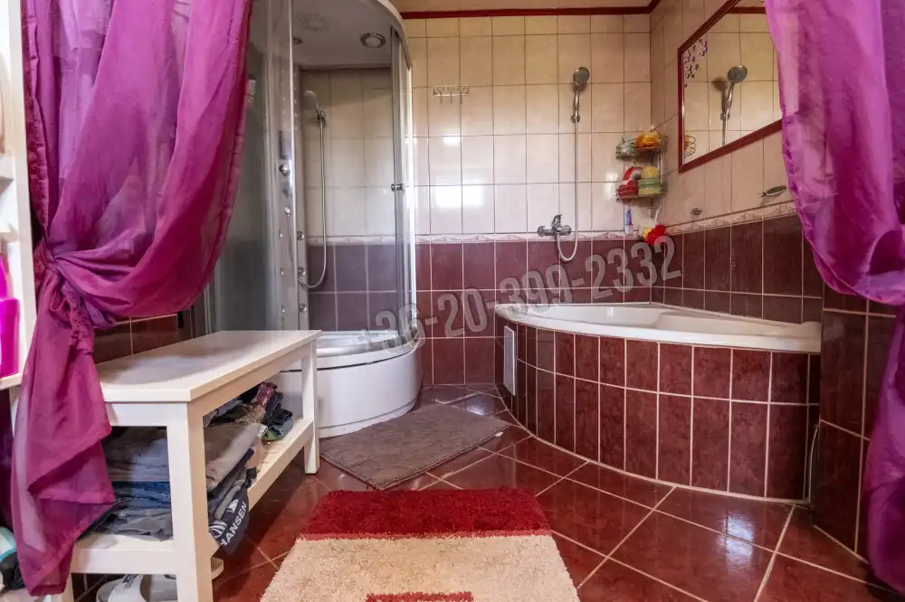 Ebből lett kialakítva egy 308 m2-es Ház, ami amerikai konyhás nappali + 5 hálószoba, 2 dolgozószoba, kreatív helyiség, kamra, gardrób, fürdőszoba káddal – zuhanyzóval és 2 Wc vel kialakított és +plusz a főházhoz egybe épült 90 nm-es fedett garázs, és azon túl pedig a zárt és nyitott csarnokokkal, mintegy 360 m2 nagyságban.