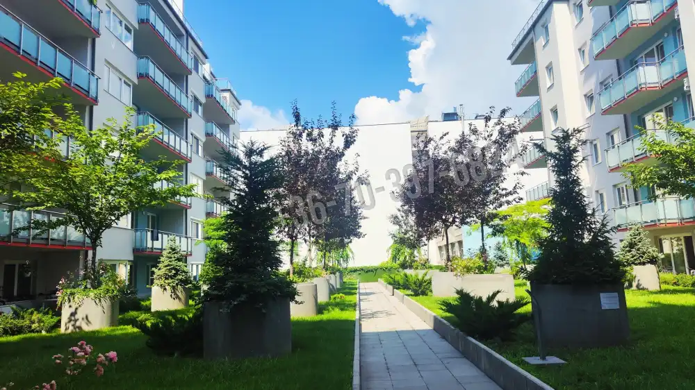 A ház rendezett, 2 liftes, nagy belső kerttel. A bevásárlási, és szórakozási lehetőségek sétatávolságra vannak.