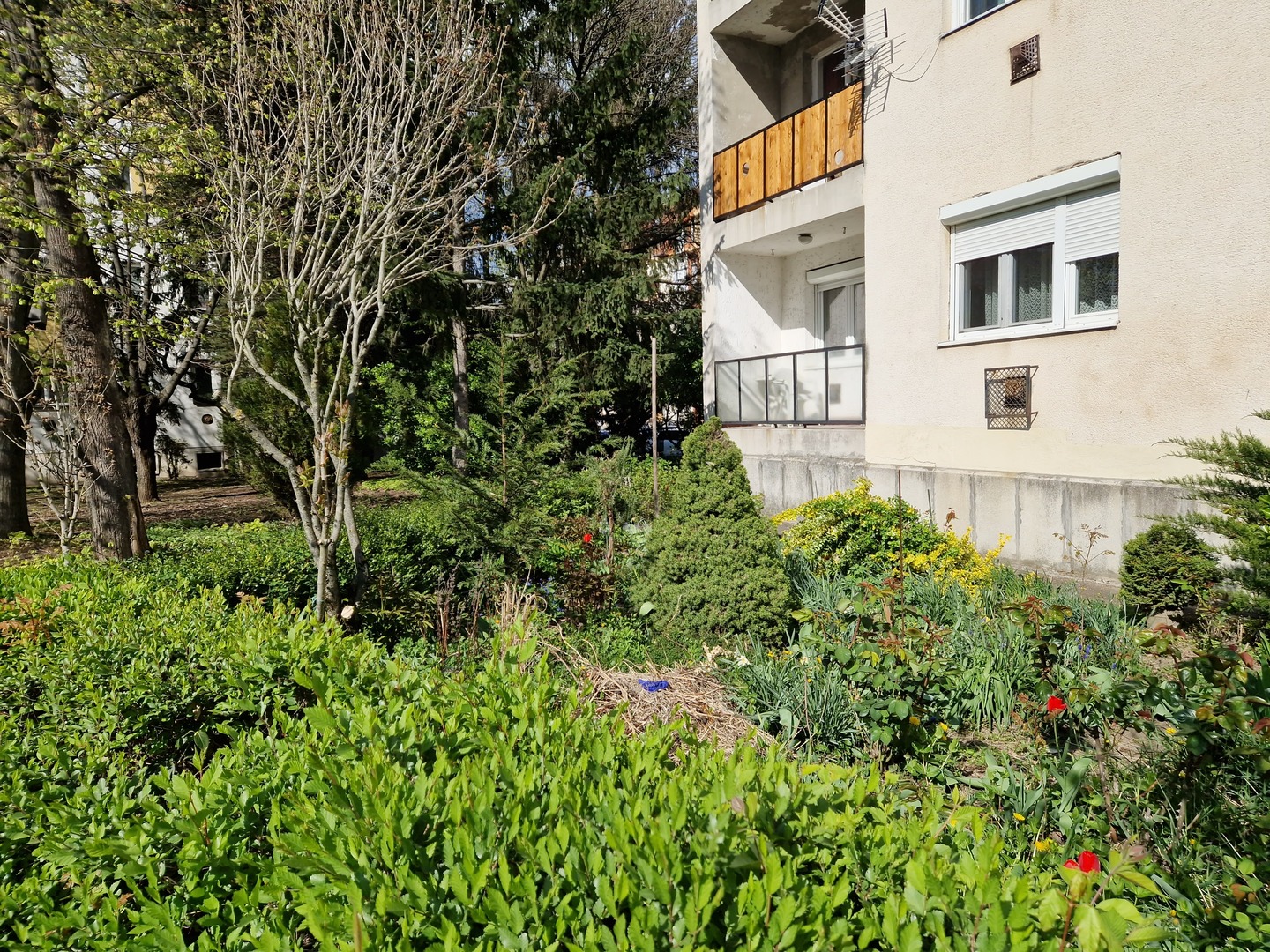 A 1971-ben, téglából épült négyemeletes társasház, szinte egy liget közepén fekszik. A lakást kényelmes pár lépcsőfokkal tudjuk megközelíteni.
