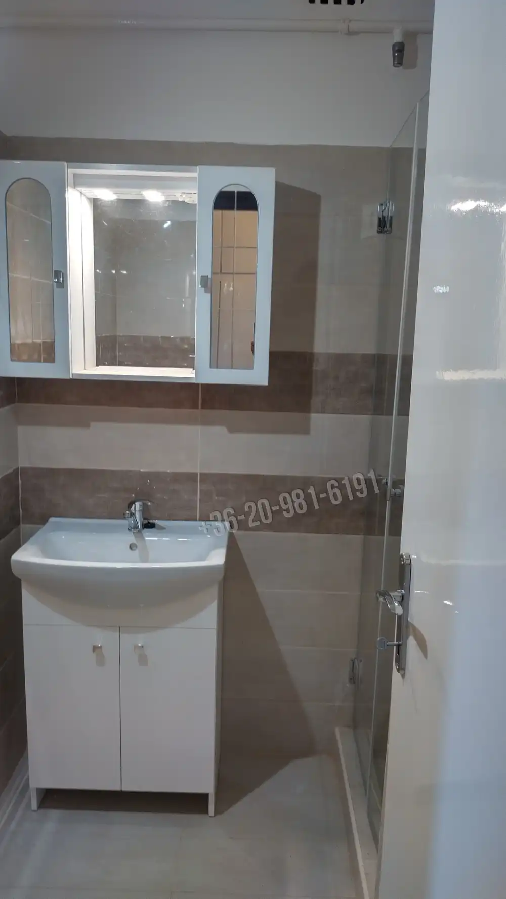 A szobákban felújított fa parketta burkolat található, a lakás többi részén új kerámia burkolatok.